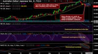 Please be noted that this is an attempt of correlating the daily price behavior with theweekly trend. On daily terms, the current prices slide below DMAs after shooting star formation at 86.933 levels. AUDJPY bears...