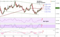 NZD/USD is testing 100-DMA resistance, break above will see further upside. Technical studies on daily and weekly charts are bullish. Bullish RSI divergence seen on daily charts. RSI is also strong at 58 levels...