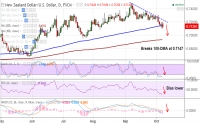 NZD/USD breaks below 100-DMA at 0.7147 to hit fresh 4-week lows of 0.7125, intraday bias lower. Kiwi extends weakness after market pricing for a Nov OCR cut has eased after upbeat NZ business confidence...