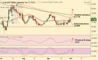 AUD/JPY was rejected at major trendline resistance on Friday. Pair holds gains above 20-DMA at 77.17, which is now strong support on the downside. Technicals on daily charts support further gains, break above...