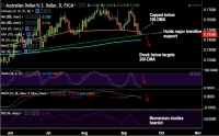 AUD/USD price action capped below 100-DMA at 0.7478, intraday bias lower. Technical indicators on weekly charts are heavily bearish, scope for more downside. On the daily charts downside has held major trendline...