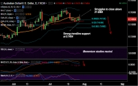 FxWirePro: AUD/USD erases CPI led gains, slips below 21-DMA, close above needed for upside