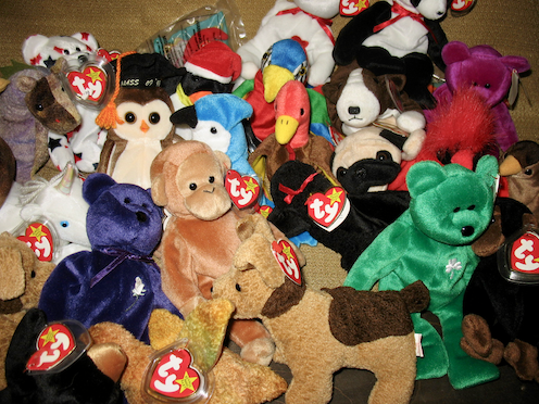 Beanie Babies were launched in 1993 by a toy company called Ty. In the late 1990s, some people went nuts for these plush toys. The craze started with collectors in the Chicago suburbs but quickly spread – helped by the rise of online auction websites such as eBay. Collecting Beanie Babies became a fad not just among kids who thought they were cute or wanted to play with them, but also among adults who thought the plushies offered a way to get rich quick.