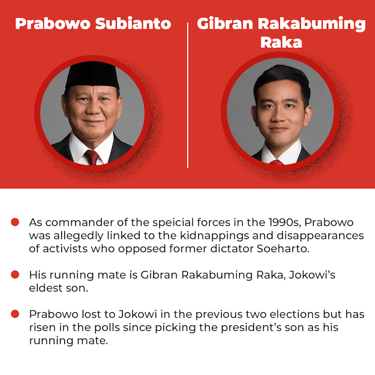 According to opinion polls, the favourite is Prabowo Subianto, leader of the Greater Indonesia Party (Gerindra), a populist and nationalist party he founded in 2008. A former army general, Prabowo has already stood unsuccessfully for president twice before. He is also the defence minister in the cabinet of the current president, Joko “Jokowi” Widodo.