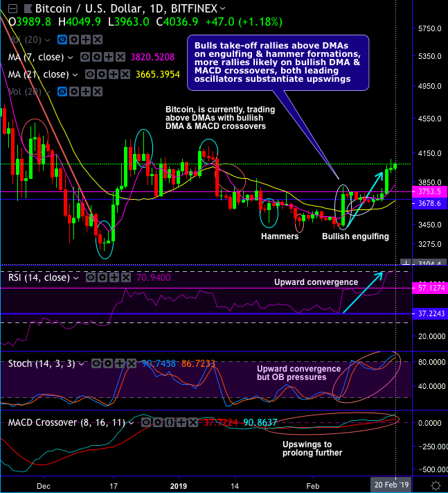 Bitcoin price extended its recent rallies after it broke-out decisively the resistance zone of $3,675 - $3,750 mark against the US Dollar. Well, we reiterate that this 22nd February, the latest round of BTCG19 CME futures (contract started on December 3rd2018) expires.