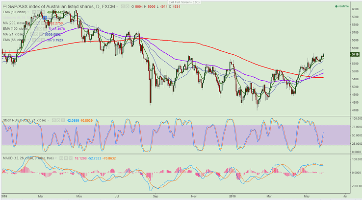 - ASX200 has broken major resistance 5400 and jumped till 5431. It is currently trading at 5417.