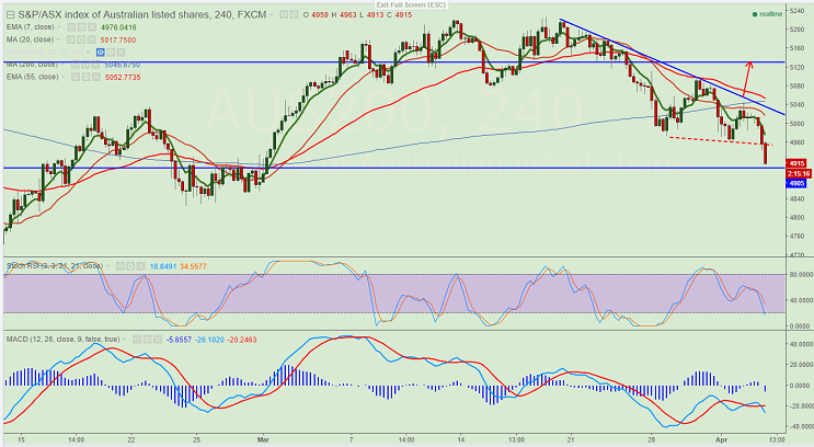 - ASX200 has broken major support 4960 and declined till 4922 at the time of writing. It is currently trading at 4923.