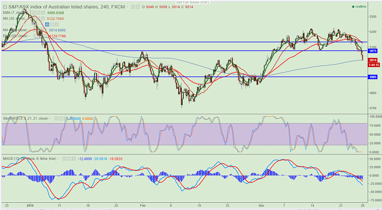 - ASX200 has broken major support 5015 and declined till 5014 at the time of writing. It is currently trading at 5016.