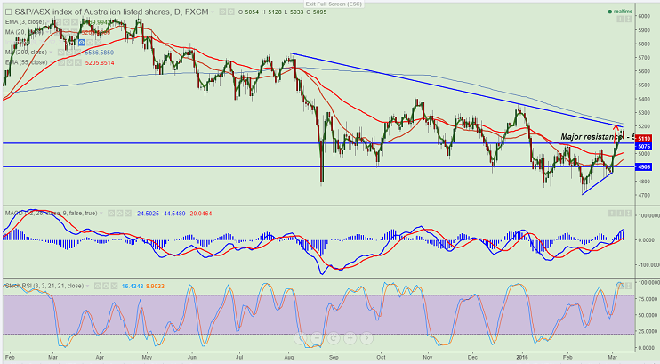 - ASX200 has retreated after making a high of 5180. It is currently trading around 5112.
