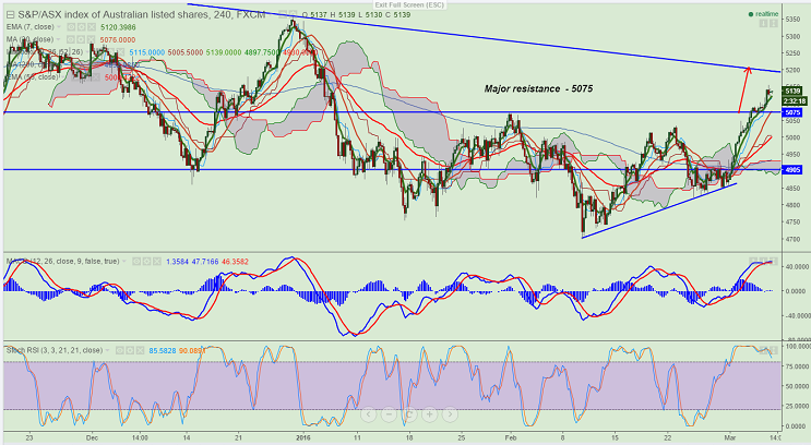 - ASX200 breaks major resistance 5100 and jumped till 5155. It is currently trading around 5135.