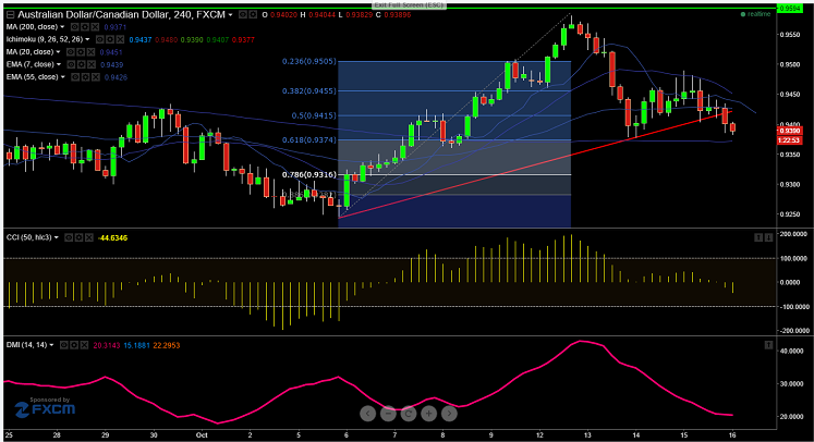 - AUD/CAD has broken minor trend line support around 0.9410 (trend line joining 0.92460 and 0.9378) and this confirms short term weakness , a decline till 0.9315/0.9260 is possible .