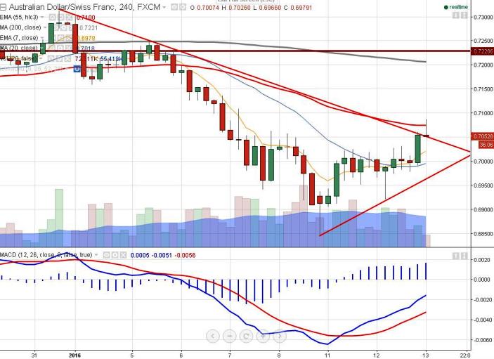 AUD/CHF has recovered after making a low of 0.69215. It is currently trading around 0.7068.
