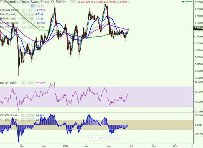 - The pair has broken major resistance 0.702 (90 day EMA) and jumped till 0.72287.It is currently trading around 0.72213.