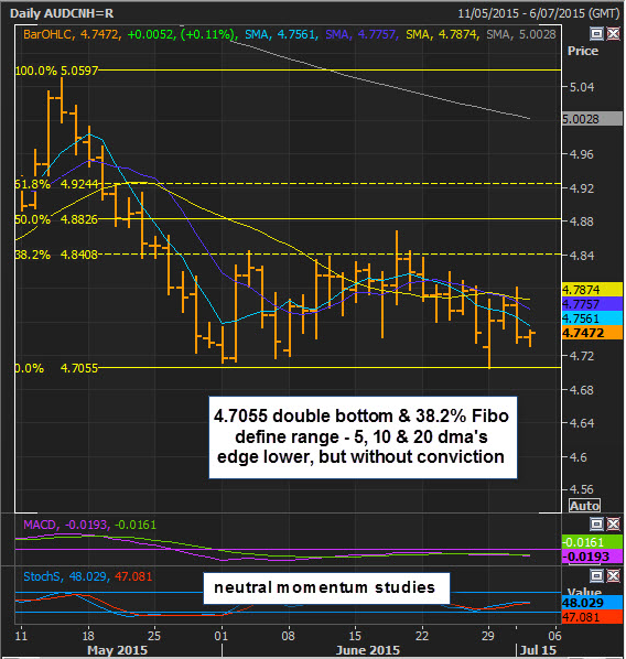 - AUD/CNH 5, 10 & 20 dma's edge lower- modest bearish setup