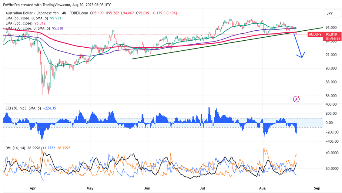 ‘The pair is trading below 55 and 200 EMA and 365 EMA (long-term) on the 4-hour chart, confirming a bearish trend. Any violation below 94.80 indicates the intraday trend is weak. A dip to 93.95/93 is possible. Immediate resistance is at 95.35. A breach above this level targets 95.80/96.20/96.50/96.85/97.20/97.64/98.