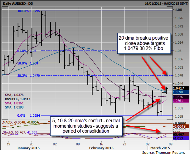 - 1.0398 20 dma break a positive - close above targets 1.0479 38.2% 2015 fall