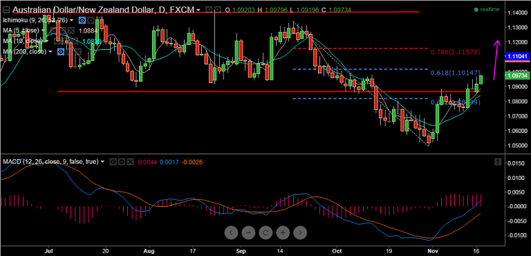 Our AUD/NZD long is in decent shape, positive setup in the pair continues, bulls likely to test 1.1014, 61.8% of Sep/Nov fall.
