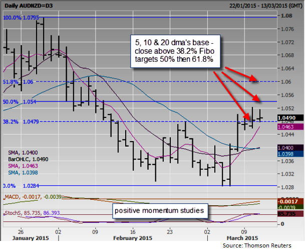 - Targets 1.0540, 50% of 2015 fall then 1.0600 61.8% retracement
