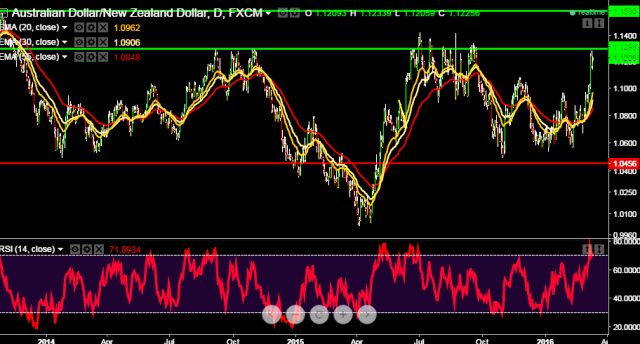 Go long in AUD/NZD around 1.1220, stop loss 1.1144 and target 1.1298/ 1.1590 levels.