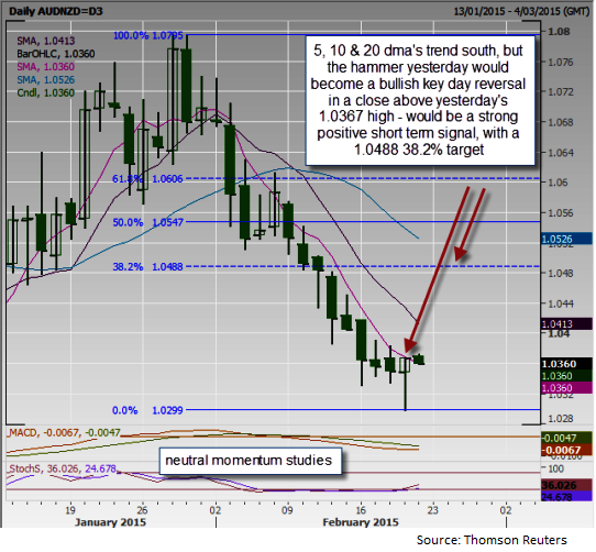 - Opened +0.15% - bounce off 1.0299 leaves hammer reversal signals