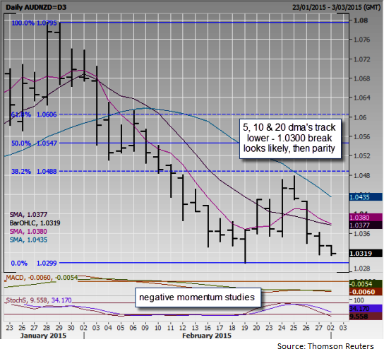 - Off 12pts in Asia, as AUD tracks USD higher, NZD lags behind