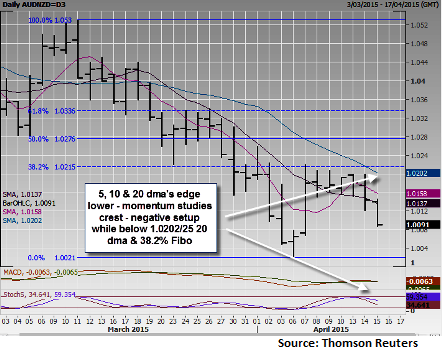 5 ,10 & 20 dma's continue to fall, momentum studies Bias lower while 1.0215, 38.2% of Mar April & 1.0250 falling 20 dma hold Initial support/resistance at 1.0151/1.0208