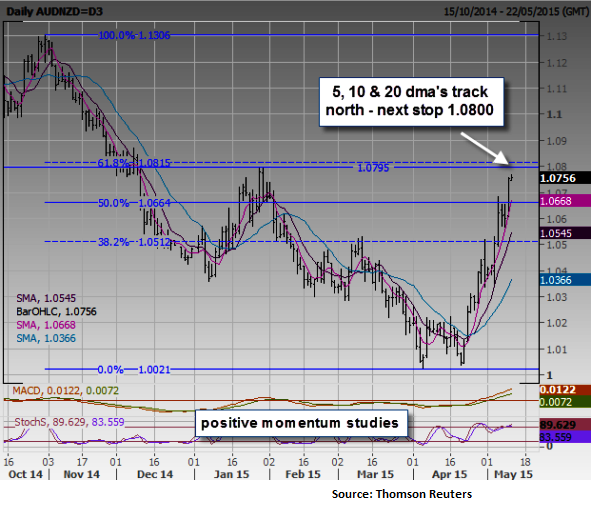 - 5, 10 & 20 dma's track north for Fibo & 2015 high resistance at 1.0800