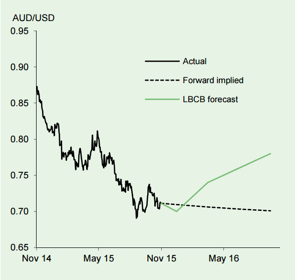 Despite this, further short-term AUD weakness is possible and AUD/USD could retest its recent low just below 0.69 if the US Fed hikes in December. However, it is now likely that the AUD is at or close to bottoming and probably will be range bound for the next few months, before beginning a retracement later next year as global economic activity improves and commodity prices strengthen.