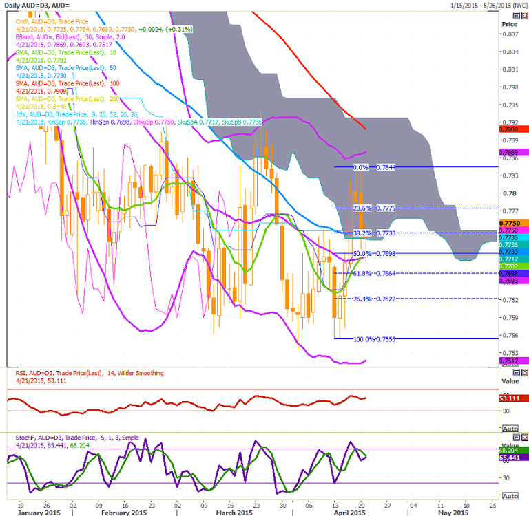 - Resistance at daily pivot at 0.7759, then minor Fib at 0.7775