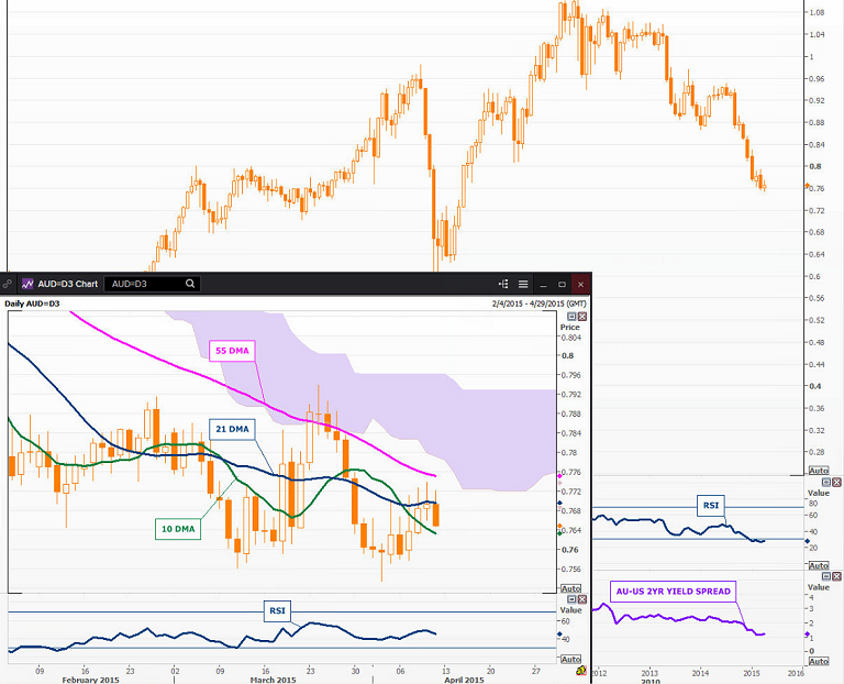 - Firm USD, new iron-ore low, narrower spreads & RBA cut fears all weigh on AUD