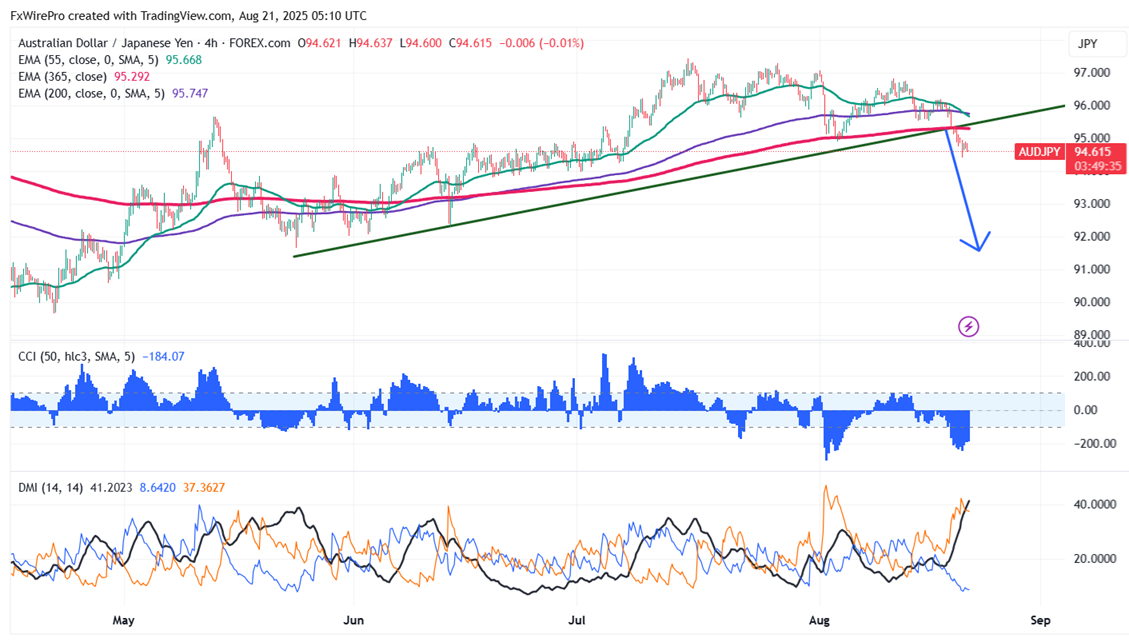 ‘The pair is trading below 55 and 200 EMA and 365 EMA (long-term) on the 4-hour chart, confirming a bearish trend. Any violation below 94.40 indicates the intraday trend is weak. A dip to 93.95/93 is possible. Immediate resistance is at 95.35. A breach above this level targets 95.80/96.20/96.50/96.85/97.20/97.64/98.