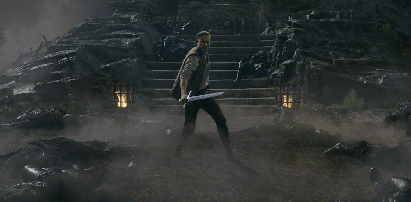 Arthur’s crew accordingly punch their way through this movie without any discernible plan or ideological affiliation – and seem content with delivering short, snappy but vacuous replies to any taunts or threats as they arise, shrugging off any opposition or disbelief. Thankfully, little is needed in the way of structured thought and speech, as one of his opponents conveniently reminds him: “If you’re lost for words, the sword will speak for you.”