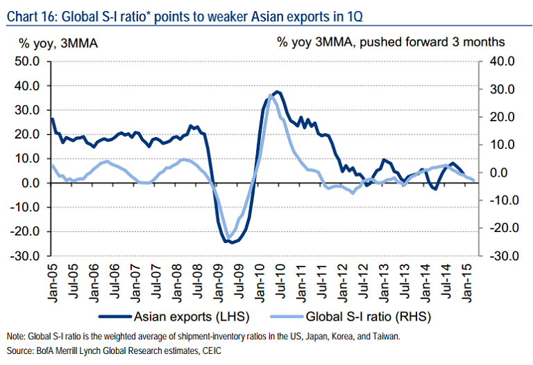 - Our aggregate S-I ratio also points to potentially weaker EM Asia exports growth in 1Q15, despite signs of improvement in real exports for a few export-oriented economies within Asia.