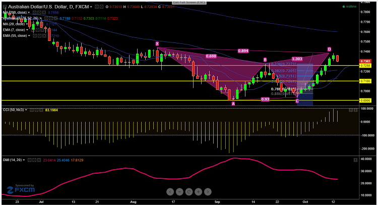 - On the lower side minor support is around 0.7270 and any break below targets 0.7200/0.7145/0.7100.