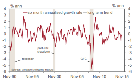 The growth rate of leading indicators in Australia is disappointing last five month as it is growing rate below trend. This gives an indication that the Australian economy will post a weaker growth rate in first half of 2016.