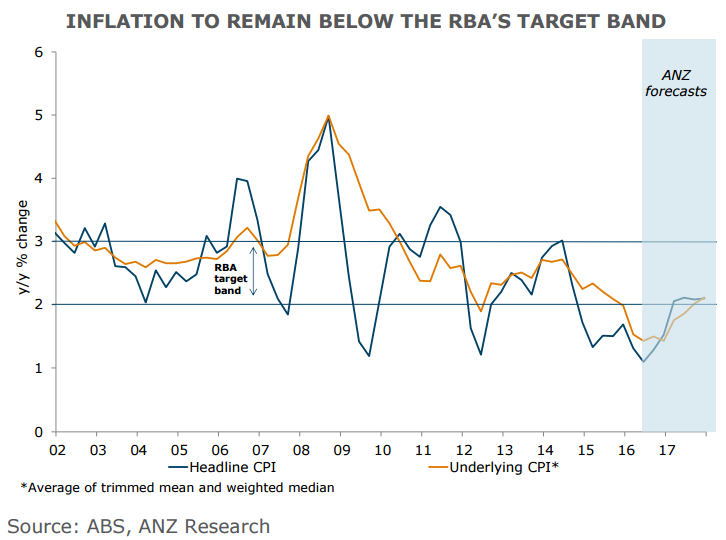 RBA in its quarterly Statement of Monetary Policy (SoMP) released in May cut its Dec-16 inflation forecasts by a full percentage point. Muted price pressures are consistent with the Melbourne Institute Monthly Inflation Gauge, which rose by just 0.1% in Q2, and ongoing deceleration in the NAB survey of retail prices. Melbourne Institute’s monthly inflation index provides a timely snapshot of consumer price trends in Australia showed June inflation expectations improved, but overall inflation remained well below the central bank’s target range.