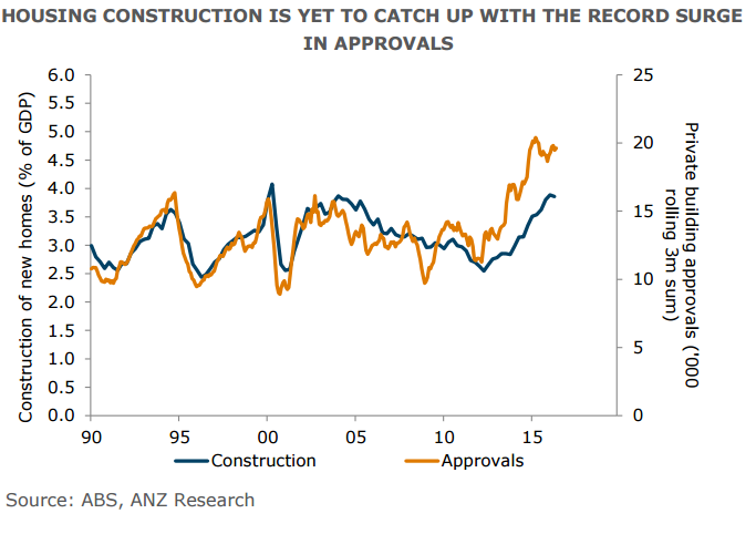 "This suggests to us that housing activity will continue to pick up into next year, although we are concerned that construction will fall sharply once the backlog is exhausted," said ANZ in a report.