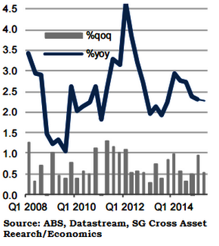 Meanwhile, final domestic demand is expected to have held up fairly well. Judging by retail sales, private consumption probably accelerated slightly, supported by strong employment and growth in real wages. Arguably the most watched component of demand, fixed investment given the steep adjustment in the mining sector, is likely to have expanded, albeit only weakly, thanks to a surge in private sector engineering work related to mining activity.