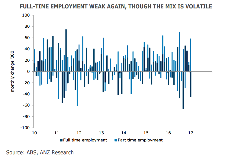"The January employment data has no impact on our view that the RBA is on hold for an extended period," said ANZ in a report.