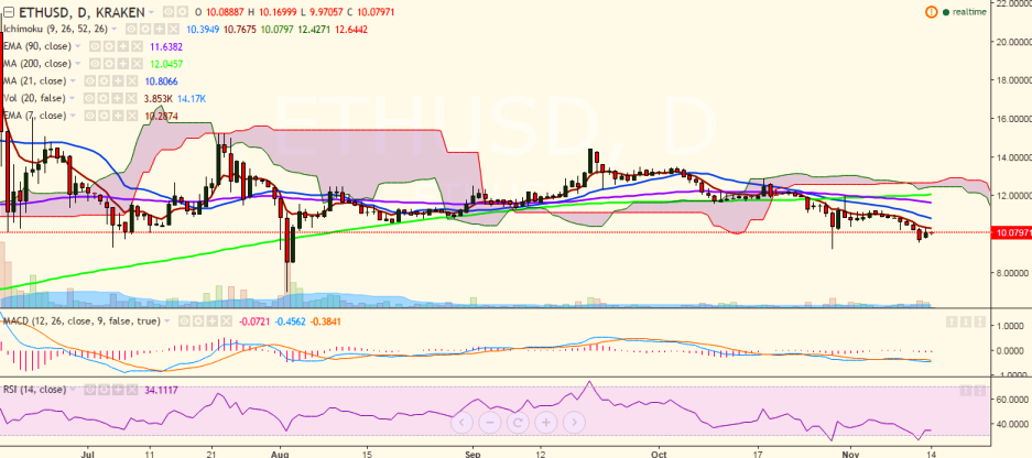 BTC/GBP briefly broke above 21-day MA on Tuesday and hit 589.79 levels. However, it failed to hold its strength and is currently trading at 574 levels (Coinbase).