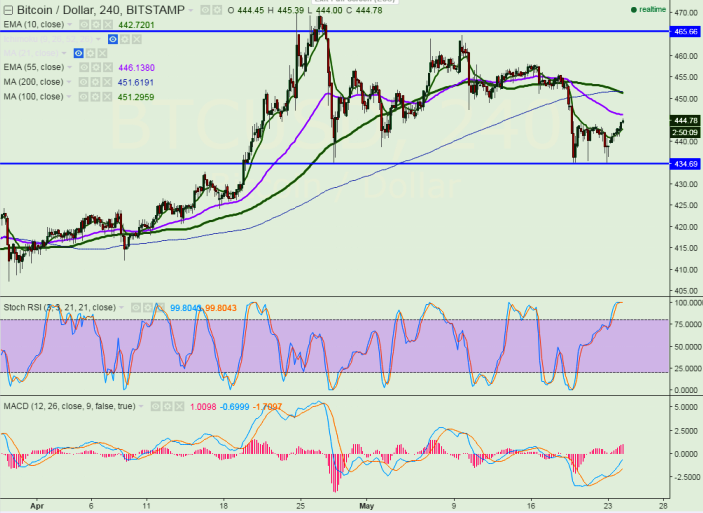 - BTC/USD has once again slightly recovered after making a low of $435. It is currently trading around $442.