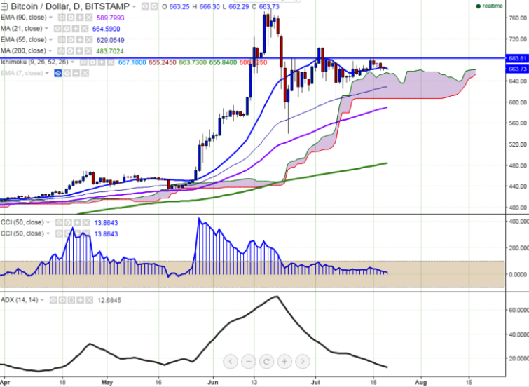 BTC/USD is trading in a narrow range on Friday, between 662 and 666 levels. The pair managed to break above 21 MA recently but seems to be failing to sustain its strength. It is currently trading at 665.12 levels at the time of writing (Bitstamp).