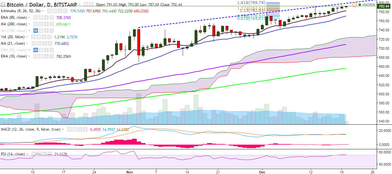On the reverse side, the pair has taken support near 779.99 (10-EMA) and a break below would drag it to 767.74 (21-day MA)/743 (December 05 low).