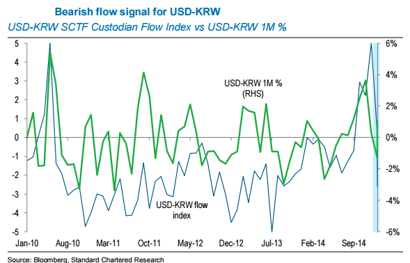 Standard Chartered notes as follows obtained a bearish SCTF flow signal for USD-KRW. Flow dynamics suggest there may be some correction in USD-KRW in the near term.