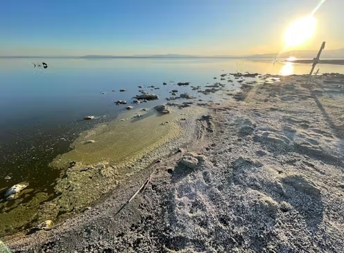 You can still find old billboards promising a resort life on the Salton Sea, which today is one of the state’s most polluted lakes. Wind kicks up toxic dust when the water is low. Manuel Pastor