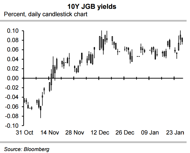 BOJ has said it would keep that pace of JGB purchase even under its yield curve control policy. The BOJ's total bond buying in January looks set to be around 8.2 trillion yen, the lowest since October 2014. It has to maintain an average of 9.4 trillion yen purchases to maintain its previous policy target to increase its bond holdings by 80 trillion yen a year.