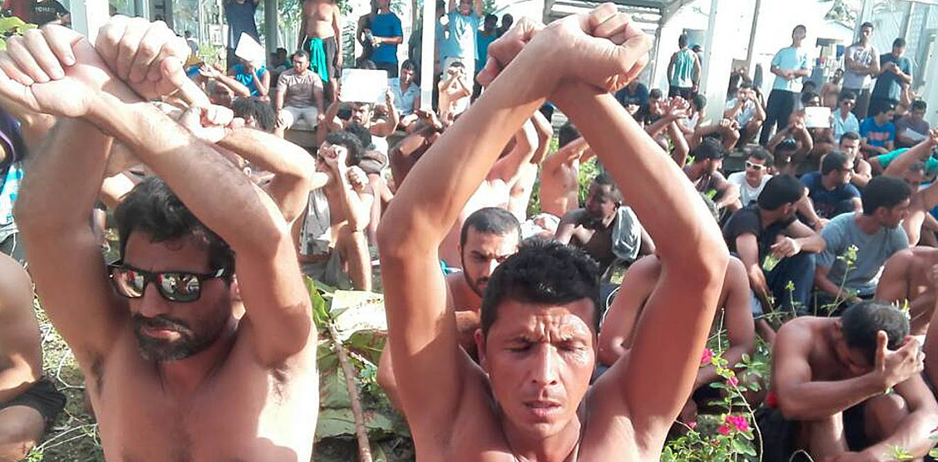 Australians accept detention on Nauru and Manus as a “necessary evil” to prevent an uncontrollable flow of asylum seekers to Australia by boat. Boochani dissects this necessary evil. He sits us on a white plastic chair, our feet on the wire border fence, overlooking the jungle.