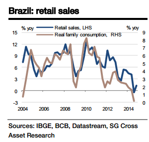 - This is a classic recessionary sales pattern. Looking ahead, the rising employment rate, lower wage growth and higher inflation will continue to keep real consumption growth low adding to growth woes. In fact, given the continued deterioration in the consumption outlook, our forecast of 1.0% consumption growth in 2015 looks slightly optimistic.