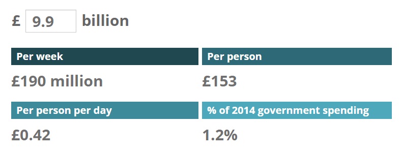 With that figure, cost of staying in EU, per person is about 42 pence per day, which is in fact not that big a contribution.
