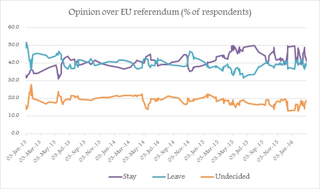 - According to the average of polls dating back to as early as 2010, 41.5% people are willing to vote to stay, 40% preferring to leave and rest 18.5% still remain undecided.